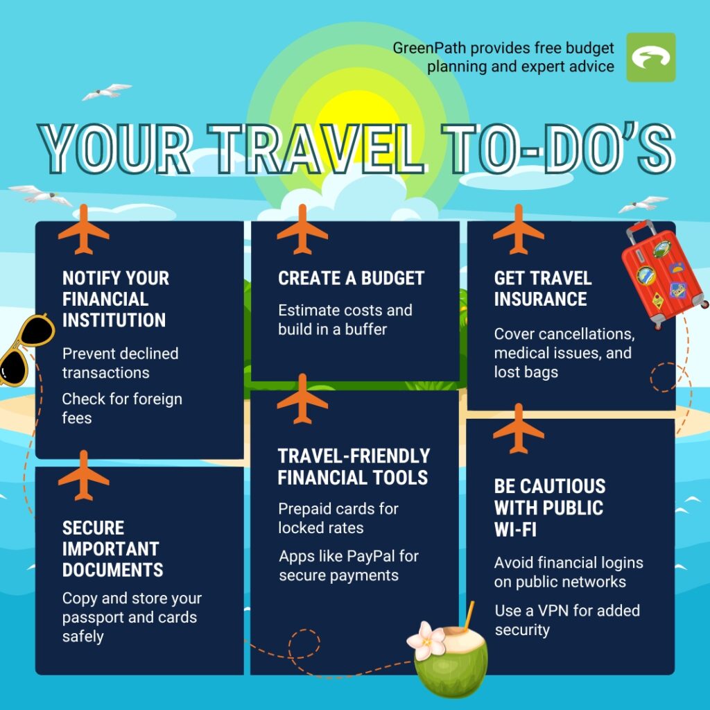 Traveling offers us all the opportunity to unplug from daily routines. If you’re making plans, it’s important to protect your finances to ensure a stress-free and enjoyable travel experience. Here are our suggestions.